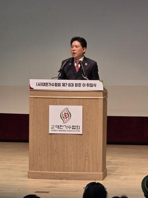 [½Ã»çÄÚ¸®¾ÆÀú³Î=ÀÌÈñ³» ±âÀÚ] °¡¼ö ¹Ú»óö ¾¾°¡ Á¦ 8´ë (»ç)´ëÇѰ¡¼öÇùȸ ȸÀåÀ¸·Î ÃëÀÓÇß´Ù. Áö³ 22ÀÏ ¿ÀÈÄ ¼¿ï ¾çõ±¸ Çѱ¹¹æ¼Ûȸ...