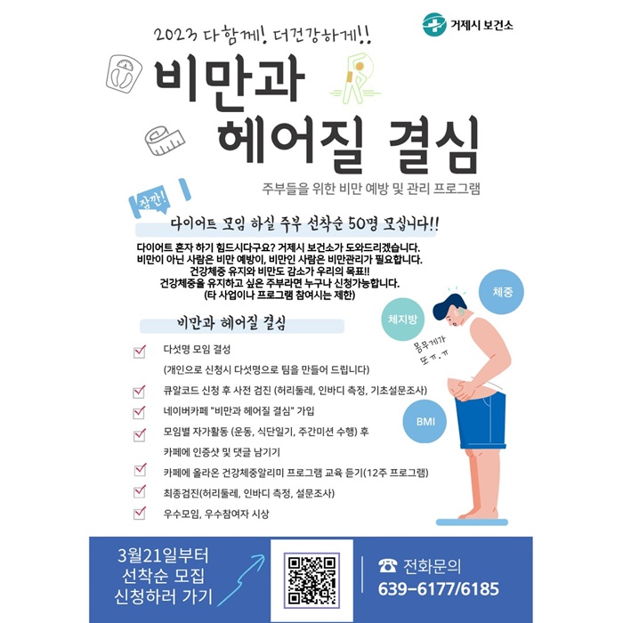 'ºñ¸¸°ú Çì¾îÁú °á½É'Àº °Ç°°ü¸®¿¡ ¼ÒȦÇÑ ÁֺεéÀ» ´ë»óÀ¸·Î ºñ¸¸ÀÌ ¾Æ´Ñ »ç¶÷Àº ¿¹¹æÀ», ºñ¸¸ÀÎ »ç¶÷¿¡°Ô´Â °ü¸®¸¦ ÇØÁÖ´Â °Ç°Ã¼Á߾˸®¹Ì ÇÁ·Î±×·¥À» ÀÌ¿ëÇÑ ±³À°À» ºñ´ë¸éÀ¸·Î ÁøÇàÇÑ´Ù.