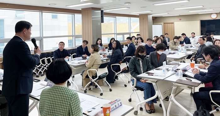 [½Ã»çÄÚ¸®¾ÆÀú³Î=Á¤Á¾¹Î ¼±ÀÓ±âÀÚ] °æ³²µµ±³À°Ã»(±³À°°¨ ¹ÚÁ¾ÈÆ)Àº 21ÀÏ µµ±³À°Ã» Á¦2û»ç ´ëȸÀǽǿ¡¼ °æ»ó³²µµ´Ù¹®È°¡Á·Áö¿ø¼¾ÅÍ(¼¾ÅÍÀå ½ÂÇØ°æ), ½Ã±ºº° °¡Á·¼¾ÅÍ, ±³À°Áö¿øÃ» ´Ù¹®È ±³À° ´ã´ç µî ÃÑ 40¿© ¸íÀÌ ¸ð¿© ‘´Ù°¡Ä¡ Áö¿ø ÇùÀÇü’ °£´ãȸ¸¦ ¿¾ú´Ù.