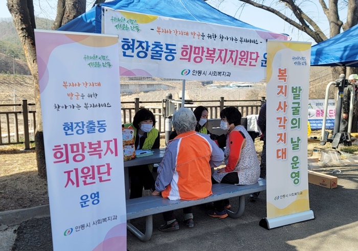 [½Ã»çÄÚ¸®¾ÆÀú³Î=±è¿¬ÇÐ ±âÀÚ] ¾Èµ¿½Ã Èñ¸Áº¹ÁöÁö¿ø´ÜÀº 21ÀÏ ±æ¾È¸é ÇöÇÏ2¸®¿¡¼ ÇöÀå Áß½ÉÀÇ Ã£¾Æ°¡´Â 'º¹Áö»ç°¢Áö´ë ¹ß±¼ÀÇ ³¯'À» ¿î¿µÇß´Ù.