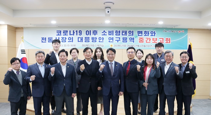 [½Ã»çÄÚ¸®¾ÆÀú³Î=±è¿¬ÇÐ ±âÀÚ] °æºÏµµÀÇȸ ÀÇ¿ø¿¬±¸´ÜüÀÎ '°æ»óºÏµµÀüÅë½ÃÀåȰ¼ºÈ¿¬±¸È¸'(´ëÇ¥ ¹èÁø¼® ÀÇ¿ø, °æÁÖ)´Â 22ÀÏ µµÀÇȸ ´Ù¸ñÀû½Ç¿¡¼ ‘Äڷγª19 ÀÌÈÄ ¼ÒºñÇüÅÂÀÇ º¯È¿Í ÀüÅë½ÃÀåÀÇ ´ëÀÀ¹æ¾È ¿¬±¸¿ë¿ª’ Áß°£º¸°íȸ¸¦ °³ÃÖÇß´Ù.