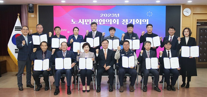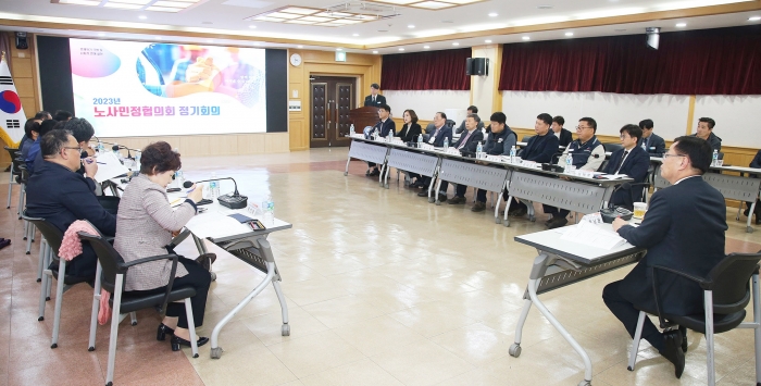 ƯÈ÷ ³ë»ç¹ÎÁ¤ÇùÀÇȸ´Â ÃÖ±Ù À̽´°¡ µÇ°í ÀÖ´Â ³ëµ¿½ÃÀå À¯¿¬È, ÀÏÀÚ¸® ¹®Á¦ µî¿¡ ´ëÇØ ¿¬´ë¿Í Çù·ÂÀ» ÅëÇØ ¹®Á¦¸¦ ÇØ°áÇϰí, °æ±âħü°¡ Áö¼ÓµÇ°í ÀÖÁö¸¸ Á¤ÁÖ¿©°Ç °³¼±À» À§ÇØ ³ë・»ç・¹Î・Á¤ÀÌ °¢ÀÚ À§Ä¡¿¡¼ ÃÖ¼±À» ´ÙÇϰí, ÇÔ²² ¼ÒÅë Çù·ÂÇÏ¿© Áö³Çغ¸´Ù ³ªÀº ¼º°ú¸¦ ÀÌ·çµµ·Ï °áÀǸ¦ ´ÙÁ³´Ù.