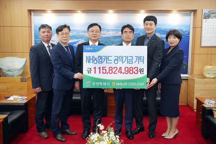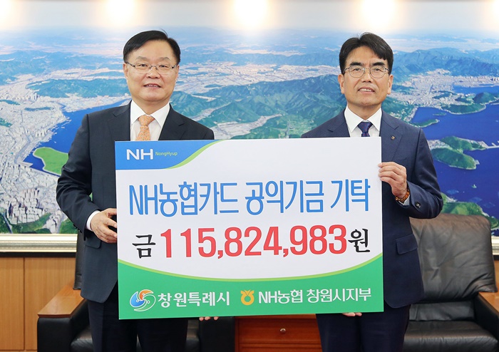 | ±è°©¹® NH³óÇùÀºÇà â¿ø½ÃÁöºÎÀå(¿À¸¥ÂÊ)Àº 23ÀÏ ¿ÀÈÄ 2½Ã â¿ø½Ãû Á¢°ß½Ç¿¡¼ È«³²Ç¥ ½ÃÀå¿¡°Ô Á¦ÈÞÄ«µå Àû¸³±â±ÝÀ» Àü´ÞÇß´Ù. |