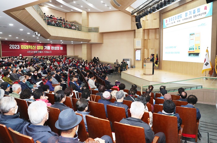 | ´ëÇѳëÀÎȸ â¿ø½Ã ¸¶»êÁöȸ°¡ 23ÀÏ ¿ÀÀü 10½Ã30ºÐ ¸¶»êÇÕÆ÷±¸Ã» 2Ãþ ´ëȸÀǽǿ¡¼ Á¤±âÃÑȸ¸¦ °³ÃÖÇß´Ù.  |