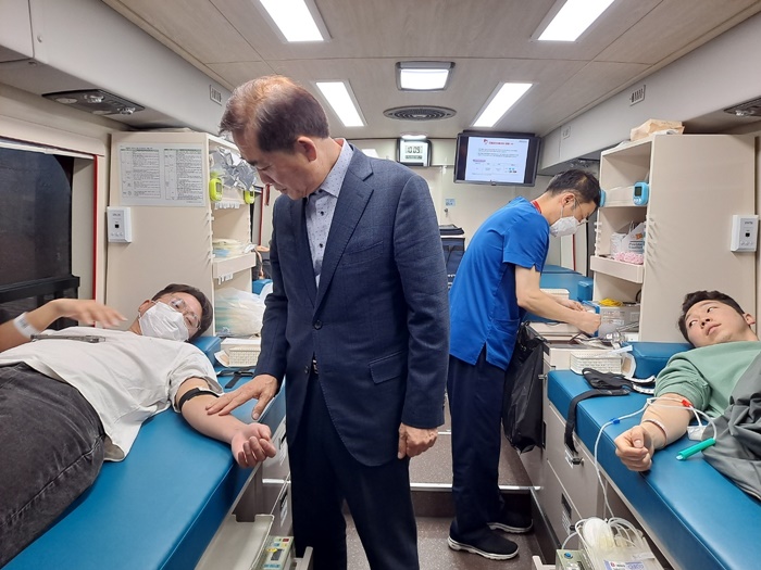 À̳¯ ÇåÇ÷ Ä·ÆäÀο¡´Â °ø»ç ÀÓÁ÷¿ø°ú ½Ã¹Î µî 50¿© ¸íÀÌ ÀÚ¹ßÀûÀ¸·Î Âü¿©ÇØ »ý¸í Á¸Áß°ú ³ª´®À» ½ÇõÇß´Ù. ÇåÇ÷Àº ´ëÇÑÀû½ÊÀÚ»ç °æ³²Ç÷¾×¿ø ÇåÇ÷ Â÷·®À» Áö¿ø¹Þ¾Æ ÀÌ·ïÁ³´Ù.