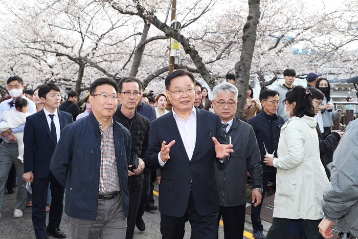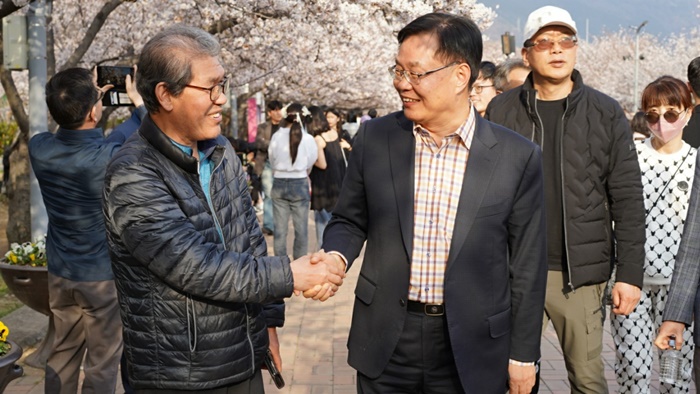 È« ½ÃÀåÀº "´ëÇѹα¹ÀÇ º½À» ¾Ë¸®´Â ÁøÇرºÇ×Á¦´Â â¿øÆ¯·Ê½ÃÀÇ ¼ÒÁßÇÑ º¸¹°ÀÌ´Ù"¸é¼ "Àü±¹ ÁöÀÚü°¡°¡ º½ ÃàÁ¦¸¦ ¿°í ÀÖÁö¸¸, ÁøÇرºÇ×Á¦´Â â¿ø¸¸ÀÇ ´õ¿í Æ¯ÈµÈ ÃàÁ¦·Î ¹ßÀü½ÃÄÑ ´Ù½Ã ã°í ½ÍÀº °÷À¸·Î ¸¸µé±â À§ÇØ ¼¼½ÉÇÑ ³ë·ÂÀ» ±â¿ïÀ̰ڴÙ"°í ¸»Çß´Ù.