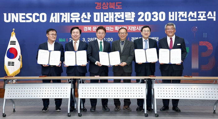 [½Ã»çÄÚ¸®¾ÆÀú³Î=±è¿¬ÇÐ ±âÀÚ] °æºÏµµ´Â 28ÀÏ µµÃ» ´ëȸÀǽÇ(ȹé´ç)¿¡¼ '°æ»óºÏµµ À¯³×½ºÄÚ ¼¼°èÀ¯»ê ¹Ì·¡Àü·« 2030' ºñÀü¼±Æ÷½ÄÀ» °³ÃÖÇß´Ù.
