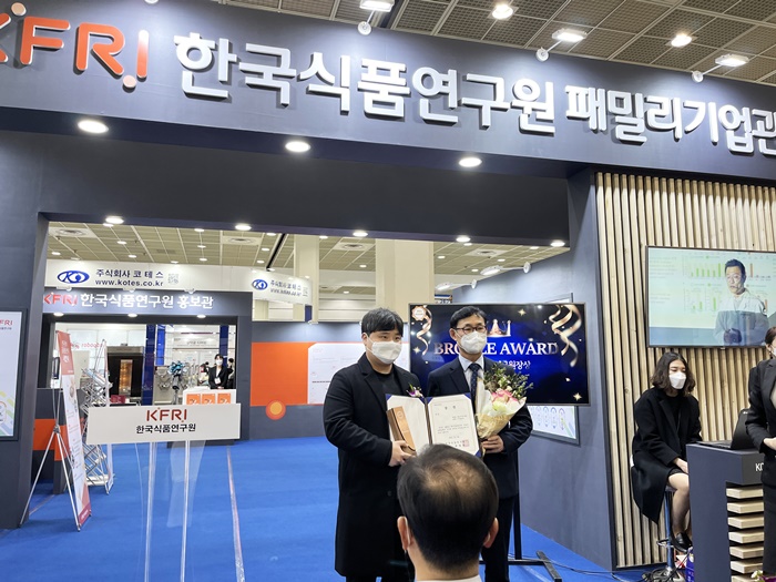 ÀÌ·¯ÇÑ ¸¶ÁÖÀÇ ¶Ù¾î³ ±â¼ú·ÂÀº ±¹³»¿Ü¿¡¼ ÀÎÁ¤¹Þ°í ÀÖ´Ù. °úÇбâ¼úÁ¤º¸Åë½ÅºÎ »êÇÏ ¿¬±¸±â°üÀÎ Çѱ¹½Äǰ¿¬±¸¿øÀÌ °³ÃÖÇÑ ‘2021³â ½Äǰ±â¼ú´ë»ó ½Ã»ó½Ä’¿¡¼ µ¿»óÀ» ¼ö»óÇϰí, ¿À»çÄ« ±¹Á¦½Äǰ»ê¾÷´ëÀü(JFEX2021)¿¡ ÃâǰÇÏ´Â Äè°Å¸¦ ´Þ¼ºÇß´Ù.