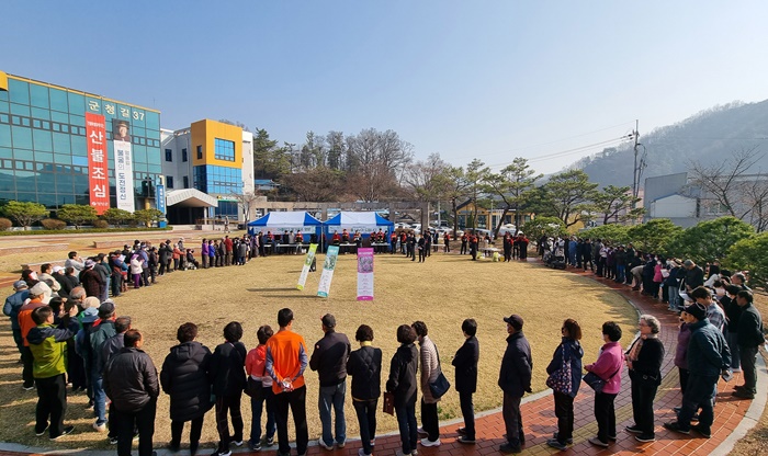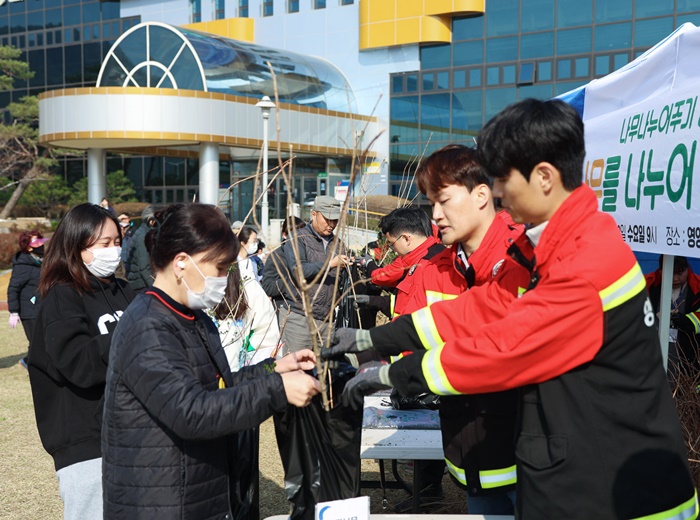 À̳¯ ³ª¹« ³ª´©¾îÁÖ±â Çà»ç¿¡ ¿µ¾ç±ºÀº ¸ñ¼ö±¹ ¿Ü 2Á¾ ¹¦¸ñ ÃÑ 4,890º»À» ÁغñÇß°í, »êºÒ¿¡ ´ëÇÑ °æ°¢½ÉÀ» °íÃëÇϱâ À§ÇÏ¿© »êºÒ¿¹¹æÈ«º¸ Ä·ÆäÀÎÀ» º´ÇàÇßÀ¸¸ç, ¿µ¾ç±º»ê¸²Á¶ÇÕ¿¡¼´Â Â÷¿Í À½·á¸¦ ÈÄ¿øÇß´Ù.