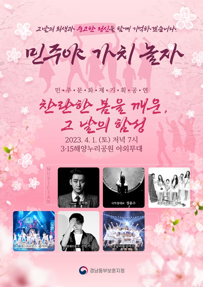 À̳¯ ¹®ÈÁ¦´Â ÀÚÀ¯¿Í ¹ÎÁÖÀÇ ¿ª»çÀû °ø°£ 3‧15ÇØ¾ç´©¸®°ø¿ø¿¡¼ ¸¶»ê°í±³Ãѵ¿Ã¢È¸ÇùÀÇȸ ÈÄ¿øÀ¸·Î ¸¶»êÁö¿ª °í±³»ý(¼±ÈĹè)ÀÇ ´ÙÁüÀ» ½ÃÀÛÀ¸·Î ±×³¯ÀÇ º½>±×³¯ÀÇ ÇÔ¼º>Ã߸ð>Âù¶õÇÑ ¹ÎÁÖÀÇ º½>¾à¼ÓÀ̶ó´Â ½ºÅ丮¸¦ ´ãÀº ¹ÎÁÖÅ׸¶ ±âȹ°ø¿¬À¸·Î ÀÌ·ç¾îÁø´Ù.