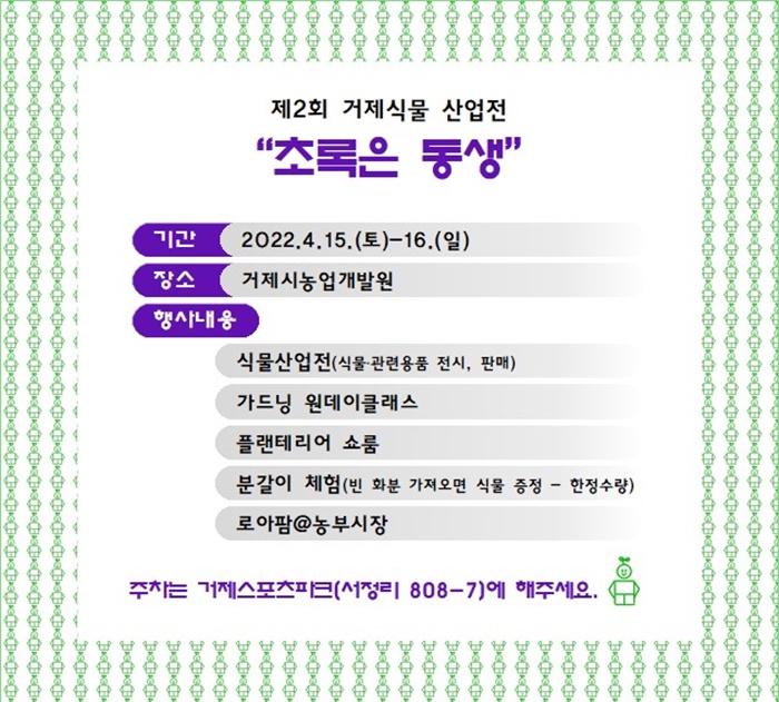 [½Ã»çÄÚ¸®¾ÆÀú³Î=Á¤Á¾¹Î ¼±ÀÓ±âÀÚ] °ÅÁ¦½Ã³ó¾÷¼¾ÅÍ´Â ¿À´Â 4¿ù 15ÀÏ Åä¿äÀϰú 16ÀÏ ÀÏ¿äÀÏ¿¡ °ÅÁ¦½Ã ³ó¾÷°³¹ß¿ø¿¡¼ 'ÃÊ·ÏÀº µ¿»ý'À̶ó´Â ÁÖÁ¦·Î Á¦2ȸ °ÅÁ¦½Ä¹° »ê¾÷ÀüÀ» °³ÃÖÇÑ´Ù°í 29ÀÏ ¹àÇû´Ù.