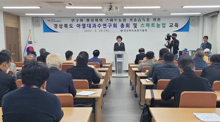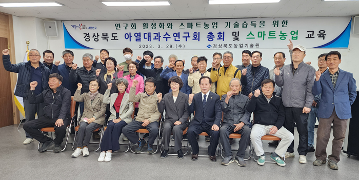 [½Ã»çÄÚ¸®¾ÆÀú³Î=±è¿¬ÇÐ ±âÀÚ] °æ»óºÏµµ³ó¾÷±â¼ú¿øÀº 29ÀÏ ³ó¾÷ÀÎȸ°ü¿¡¼ ¾Æ¿´ë°ú¼ö¿¬±¸È¸ ÀÓ¿ø ¹× ȸ¿ø 60¿©¸íÀÌ ¸ðÀÎ °¡¿îµ¥ '2023³â ¾Æ¿´ë°ú¼ö¿¬±¸È¸ ÃÑȸ ¹× ±³À°'À» °³ÃÖÇß´Ù°í ¹àÇû´Ù.