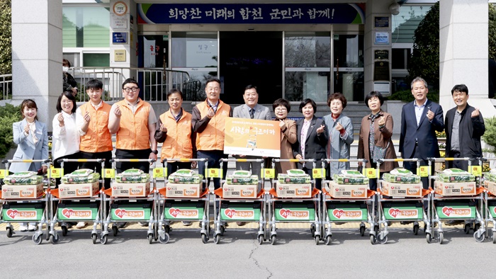 | ÇÑÈ¿¡¾î·Î½ºÆäÀ̽º ÀÓÁ÷¿øµéÀÌ 30ÀÏ ÇÕõ±ºÃ»¿¡¼ ‘»ç¶ûÀÇ ±¸¸£¹ÌÄ«’ Àü´Þ½ÄÀ» °¡Á³´Ù. |