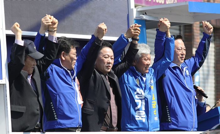 [½Ã»çÄÚ¸®¾ÆÀú³Î=Á¤Á¾¹Î ¼±ÀÓ±âÀÚ] 4.5 º¸±È¼±°Å°¡ »çÈê ¾ÕÀ¸·Î ´Ù°¡¿Â °¡¿îµ¥, Áö³ ÁÖ¸» ´õºÒ¾î¹ÎÁÖ´ç ¼º±â¿í â³ç±º¼ö·¿ì¼¿µ µµÀÇ¿ø È常¦ Áö¿øÇϱâ À§ÇØ ±èµÎ°ü ´õºÒ¾î¹ÎÁÖ´ç °æ³²µµ´çÀ§¿øÀå(ÃѰý»óÀÓ¼±´ëÀ§¿øÀå/±èÇØÀ» ±¹È¸À§¿ø)À» ºñ·ÔÇÑ Áß¾ÓÀÇ ±¹È¸ÀÇ¿øµéÀÌ ´ë°Å Áö¿øÀ¯¼¼¿¡ ³ª¼¹´Ù.