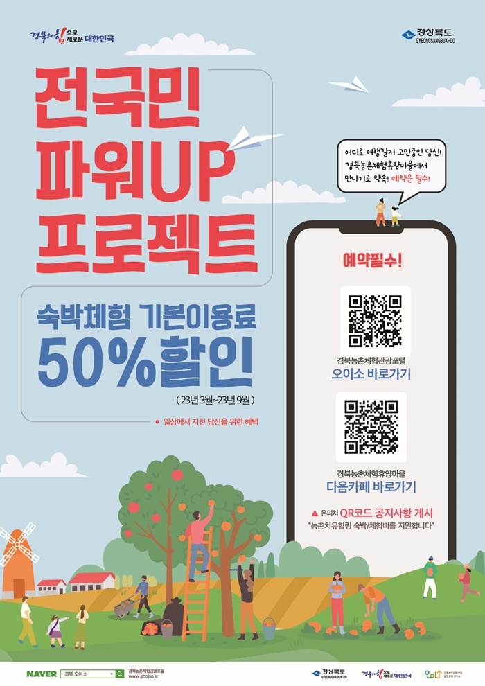 'Àü±¹¹Î ÆÄ¿öUP ÇÁ·ÎÁ§Æ®'´Â °ü±¤°´µéÀÌ °æºÏµµ ³» ¿î¿µ ÁßÀÎ ³óÃÌüÇèÈÞ¾ç½Ã¼³ ÀÌ¿ë ½Ã Ã¼Çèºñ¿Í ¼÷¹ÚºñÀÇ 50%¸¦ ÆÄ°ÝÀûÀ¸·Î ÇÒÀÎ(Æò±Õ ¼÷¹Úºñ 4~5¸¸¿ø, üÇèºñ 5~15õ¿ø)ÇØÁÖ´Â ÇÁ·Î±×·¥ÀÌ´Ù.