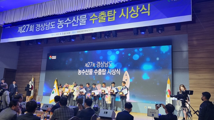 [½Ã»çÄÚ¸®¾ÆÀú³Î=Á¤Á¾¹Î ¼±ÀÓ±âÀÚ] °ÅⱺÀº 3ÀÏ Ã¢¿øÄÁº¥¼Ç¼¾ÅÍ¿¡¼ µµÁö»ç¸¦ ºñ·ÔÇÑ ¼öÃâ°ü°èÀÚ 200¿© ¸íÀÌ Âü¼®ÇÑ °¡¿îµ¥ ¿¸° Á¦27ȸ °æ»ó³²µµ ³ó¼ö»ê¹° ¼öÃâž ½Ã»ó½Ä¿¡¼ ³ó¼ö»ê¹° ¼öÃâ½ÃÃ¥ Æò°¡ ºÎ¹® ±â°ü Àå·Á»óÀ» ¼ö»óÇß´Ù.