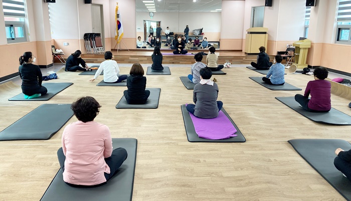 À̹ø ¿ä°¡±³½ÇÀº ÇÕõÀ¾ ¿©¼ºµéÀÇ °Ç°°ú °ÇÀüÇÑ ¿©°¡ Ȱµ¿ ¹× ¹®ÈÀû ¿ª·® °È¸¦ À§ÇØ ¸¶·ÃµÆ´Ù. 4¿ùºÎÅÍ ¿À´Â 12¿ù±îÁö ¸ÅÁÖ 2ȸ(È,¸ñ) ¿ÀÀü 9½Ã 30ºÐºÎÅÍ 10½Ã 30ºÐ±îÁö ÇÕõº¹ÇÕ¹®È¼¾ÅÍ 2Ãþ¿¡¼ ¿î¿µµÉ °èȹÀÌ´Ù.