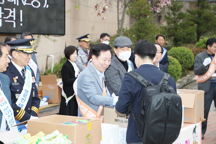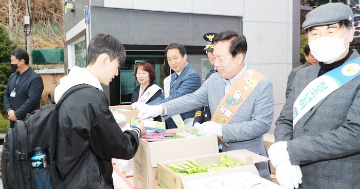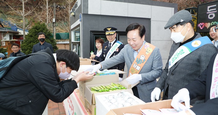 À̳¯ Çà»ç¿¡´Â ±Ç±â⠾ȵ¿½ÃÀåÀÌ Âü¼®ÇØ À̸¥ ¾ÆÄ§ µî±³ÇÏ´Â Çлý 250¿© ¸íÀ» °Ý·ÁÇϰí ÀÀ¿øÇÏ¸ç ¾ÆÄ§¹äÀ» °Ç³Þ´Ù.