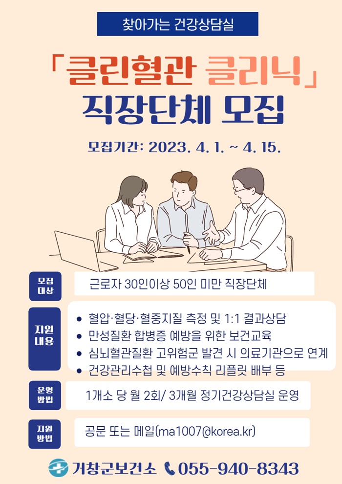 [½Ã»çÄÚ¸®¾ÆÀú³Î=Á¤Á¾¹Î ¼±ÀÓ±âÀÚ] °ÅⱺÀº ¿À´Â 15ÀϱîÁö ÀÇ·á±â°ü ¹æ¹®ÀÌ ¾î·Á¿î »ç¾÷Àå µîÀÇ Á÷ÀåÀÎÀ» ´ë»óÀ¸·Î ½É³úÇ÷°üÁúȯ ¿¹¹æ°ü¸®¸¦ À§ÇÑ Ã£¾Æ°¡´Â °Ç°»ó´ã½Ç ‘Ŭ¸°Ç÷°ü Ŭ¸®´Ð’ Âü¿© ´Üü¸¦ ¸ðÁýÇÑ´Ù.