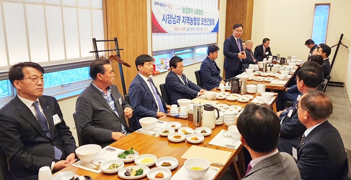 À̹ø °£´ãȸ´Â È«³²Ç¥ ½ÃÀåÀÌ ¿¬ÃʺÎÅÍ °Á¶ÇØ¿À´ø ¼ÒÅëÇàÁ¤ ÀÏȯÀ¸·Î È«³²Ç¥ â¿ø½ÃÀå°ú ³óÇùÁß¾Óȸ °æ³²ÃѰýº»ºÎÀå, â¿ø½ÃÁöºÎÀåÀ» ºñ·ÔÇÑ °¢ Á¶ÇÕÀåÀÌ Âü¼®ÇÑ °¡¿îµ¥ ÇöÀç ³ó¾÷ÀÇ ¹®Á¦Á¡°ú ¾Ö·Î»çÇ×, ¹Ì·¡ ³ó¾÷À» ¼±µµÇϱâ À§ÇØ ³ª¾Æ°¡¾ß ÇÒ ¹æÇ⼺ µîÀ» Á¦½ÃÇÏ¸ç ³ó¾÷ ºÐ¾ß ¹ßÀü¹æ¾È¿¡ ´ëÇØ ³íÀÇÇÏ´Â ¶æ±íÀº ÀÚ¸®°¡ µÇ¾ú´Ù.