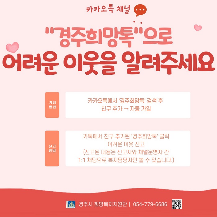 ÀÌ¿ë¹æ¹ýÀº īī¿ÀÅå »ó´Ü °Ë»öâÀ» ´©¸¥ µÚ ‘°æÁÖÈñ¸ÁÅå’À» °Ë»öÇϰųª QRÄڵ带 ½ºÄµÇØ Ã¤³ÎÀ» Ãß°¡ÇÏ¸é ´©±¸³ª °£ÆíÇÏ°Ô ÀÌ¿ëÇÒ ¼ö ÀÖ´Ù.