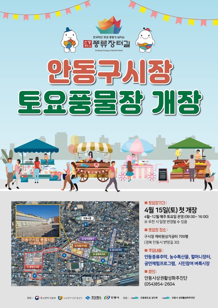 [½Ã»çÄÚ¸®¾ÆÀú³Î=±è¿¬ÇÐ ±âÀÚ] ¾Èµ¿½Ã´Â ±¸½ÃÀå°ú ÁÖº¯ Áö¿ª »ó±Ç Ȱ¼ºÈ¸¦ À§ÇØ ¿À´Â 15ÀϺÎÅÍ ¸ÅÁÖ Åä¿äÀÏ(09:00~16:00) ±¸½ÃÀå ³» Á¦ºñ¿ø »ó°¡ ºÎÁö(¹ø¿µ±æ 30)¿¡¼ Åä¿ä dz¹°½ÃÀåÀ» ¿î¿µÇÑ´Ù.