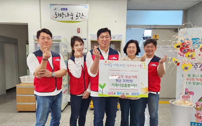 À̹ø â´Ü½Ä ÀÌÈÄ °ÅÁ¦½Ã Á¾ÇÕ»çȸº¹Áö°ü¿¡¼ ù ºÀ»çȰµ¿À» ÁøÇàÇÔ°ú µ¿½Ã¿¡ »ó¹®µ¿ Èñ¸Á³ª´®°÷°£¿¡ ÀÌ¿ôµ½±â ¼º±Ý 30¸¸¿øÀ» ±âŹÇß´Ù.