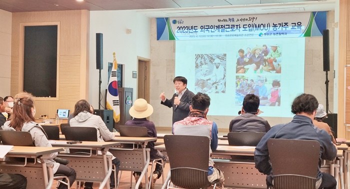 [½Ã»çÄÚ¸®¾ÆÀú³Î=±è¿¬ÇÐ ±âÀÚ] û¼Û±º(±º¼ö À±°æÈñ)Àº Áö³ 12ÀÏ Ã»¼Û¹®È¿¹¼úȸ°ü ¼Ò°ø¿¬Àå¿¡¼ 2023³â »ó¹Ý±â ¿Ü±¹ÀÎ °èÀý±Ù·ÎÀÚ °í¿ëÁÖ(³ó°¡)¸¦ ´ë»óÀ¸·Î »çÀü±³À°À» ½Ç½ÃÇß´Ù.