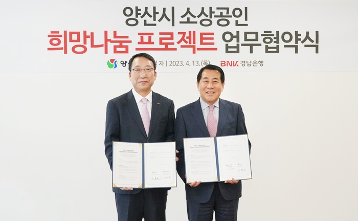 | BNK°æ³²ÀºÇà ½Åżö ºÎÇàÀå(»çÁø ¿ÞÂÊ)°ú ¾ç»ê½Ã ³ªµ¿¿¬ ½ÃÀåÀÌ ‘¼Ò»ó°øÀÎ Èñ¸Á³ª´® ÇÁ·ÎÁ§Æ® ¾÷¹« Çù¾à’À» ü°áÇϰí ÀÖ´Ù. |