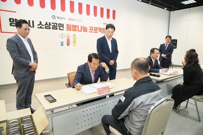 | BNK°æ³²ÀºÇà ½Åżö ºÎÇàÀå°ú ¾ç»ê½Ã ³ªµ¿¿¬ ½ÃÀåÀÌ Áö¿ª ¼Ò»ó°øÀε鿡°Ô °æ¿µ¾Ö·Î¤ý±ÝÀ¶ »ó´ã°ú °æ¿µÄÁ¼³ÆÃ µîÀ» Á¦°øÇϰí ÀÖ´Ù. |
