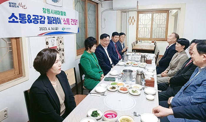 | È«³²Ç¥ â¿øÆ¯·Ê½ÃÀå°¡ 14ÀÏ Ã¢¿ø½Ã ±¹¹Î¿îµ¿´ÜüÀÎ »õ¸¶À»È¸ ÀÓ¿øÁø°ú ¸¸³ª ¼ÒÅë‧°ø°¨ ¸±·¹ÀÌ °£´ãȸ¸¦ °¡Á³´Ù. |