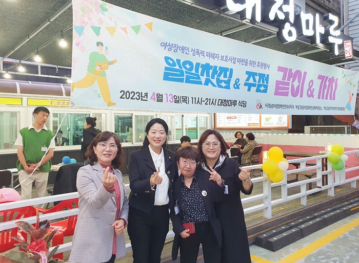 | ÀüÇö¼÷ °æ³²µµÀÇ¿ø(¿ÞÂÊ µÎ¹øÂ°)Àº 13ÀÏ °æ³²¿©¼ºÀå¾ÖÀο¬´ë¿¡¼ ÁÖÃÖÇÑ ¿©¼ºÀå¾ÖÀÎ ¼ºÆø·ÂÇÇÇØÀÚ º¸È£½Ã¼³ ¼³¸³À» À§ÇÑ ±â±Ý¸¶·Ã Çà»ç¿¡ Âü¼®ÇØ ¿©¼ºÀå¾ÖÀÎÀÇ ±ÇÀÍ¿ËÈ£¿Í ¼ºÆø·Â ÇÇÇØÈ¸º¹À» Áö¿øÇϰí ÀÖ´Â °ü°èÀÚµéÀ» °Ý·ÁÇß´Ù. |