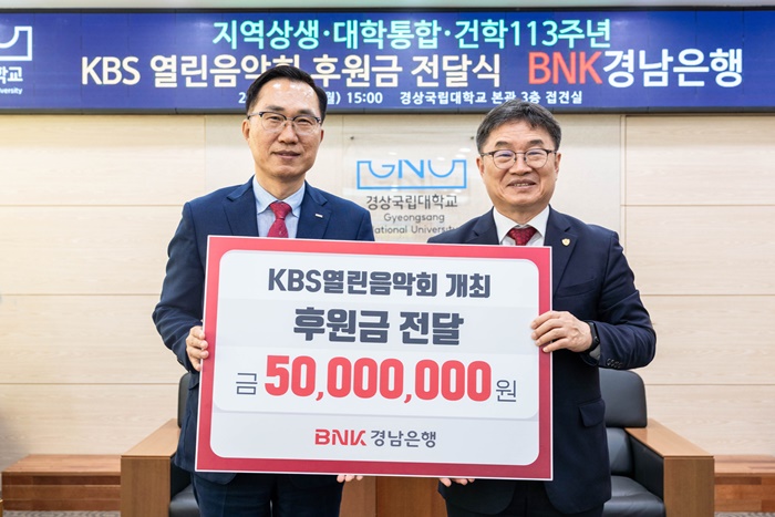 [½Ã»çÄÚ¸®¾ÆÀú³Î=±èÈñ¿µ ±âÀÚ] BNK°æ³²ÀºÇàÀº °æ»ó±¹¸³´ëÇб³¿¡ ‘KBS ¿¸°À½¾Çȸ °³ÃÖ ÈÄ¿ø±Ý 5000¸¸¿ø’À» ±âŹÇß´Ù°í 18ÀÏ ¹àÇû´Ù.