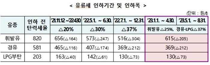 ÇöÀç ÈÖ¹ßÀ¯ À¯·ù¼¼´Â ¸®ÅÍ(L)´ç 615¿øÀ¸·Î, À¯·ù¼¼ ÀÎÇÏ Àü ź·Â¼¼À²(L´ç 820¿ø)°ú ºñ±³Çϸé L´ç 205¿ø ³·´Ù.