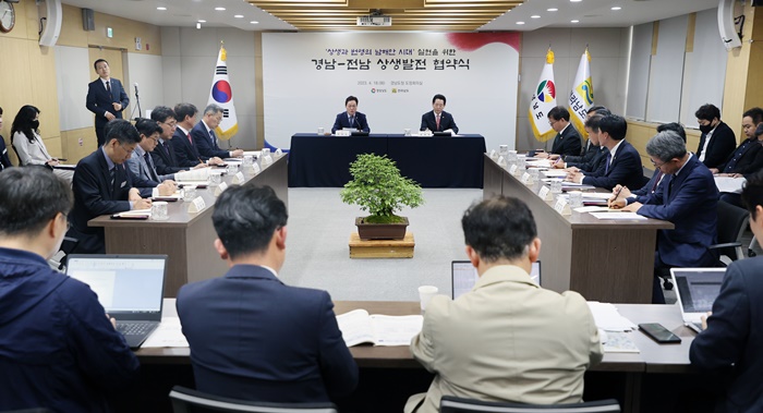 °æ³²µµ´Â 18ÀÏ ¿ÀÈÄ °æ³²µµÃ» µµÁ¤È¸Àǽǿ¡¼ Àü¶ó³²µµ(µµÁö»ç ±è¿µ·Ï)¿Í ÇÔ²² ‘°æ³²-Àü³² »ó»ý¹ßÀü Çù¾à½Ä’À» ü°áÇß´Ù.