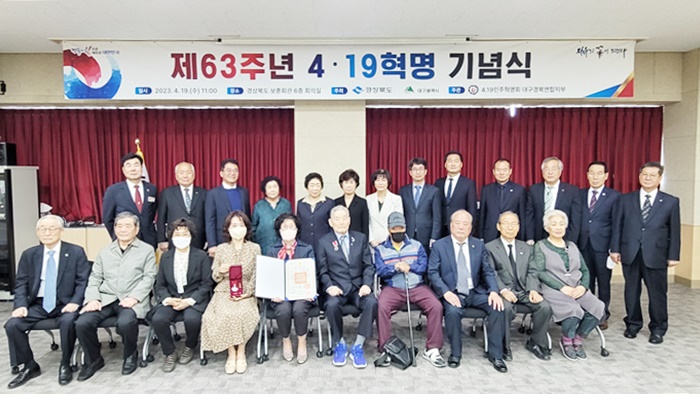[½Ã»çÄÚ¸®¾ÆÀú³Î=±è¿¬ÇÐ ±âÀÚ] °æºÏµµ´Â 19ÀÏ °æ»óºÏµµº¸ÈÆÈ¸°ü 6Ãþ °´ç¿¡¼ ´ëÇѹα¹ ¹ÎÁÖÁÖÀǸ¦ À§ÇØ Çå½ÅÇß´ø 4‧19Çõ¸í À¯°øÀÚÀÇ ¼þ°íÇÑ Èñ»ýÁ¤½ÅÀ» ±â¸®°í, ÀÚÀ¯․¹ÎÁÖ․Á¤ÀÇÀÇ 4·19Á¤½ÅÀ» °è½Â·¹ßÀü½ÃÄÑ ±¹¹ÎÅëÇÕÀÇ °è±â¸¦ ¸¶·ÃÇϱâ À§ÇÑ 'Á¦63ÁÖ³â 4.19Çõ¸í ±â³ä½Ä'À» °ÅÇàÇß´Ù.