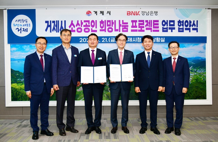 [½Ã»çÄÚ¸®¾ÆÀú³Î=Á¤Á¾¹Î ¼±ÀÓ±âÀÚ] °ÅÁ¦½Ã(½ÃÀå ¹ÚÁ¾¿ì)°¡ BNK°æ³²ÀºÇà(ÀºÇàÀå ¿¹°æÅ¹)°ú °ÅÁ¦½Ã ¼Ò»ó°øÀÎ ´ë»ó 20¾ï Ưº°´ëÃâ ±ÝÀ¶Áö¿øÀ» À§ÇØ 21ÀÏ '¼Ò»ó°øÀÎ Èñ¸Á³ª´® ÇÁ·ÎÁ§Æ®' ¾÷¹« Çù¾àÀ» ü°áÇß´Ù.