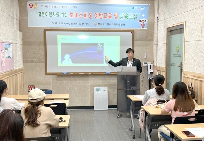 [½Ã»çÄÚ¸®¾ÆÀú³Î=±è¿¬ÇÐ ±âÀÚ] û¼Û±º ´Ù¹®È°¡Á·Áö¿ø¼¾ÅÍ´Â Áö³ 20ÀÏ NH³óÇù °æºÏº»ºÎ ÇöÀåÁö¿ø´Ü°ú ¿¬°èÇÏ¿© °áÈ¥À̹ο©¼º 20¿© ¸íÀ» ´ë»óÀ¸·Î º¸À̽ºÇÇ½Ì ¿¹¹æ±³À° ¹× ±ÝÀ¶±³½ÇÀ» ¿î¿µÇß´Ù.