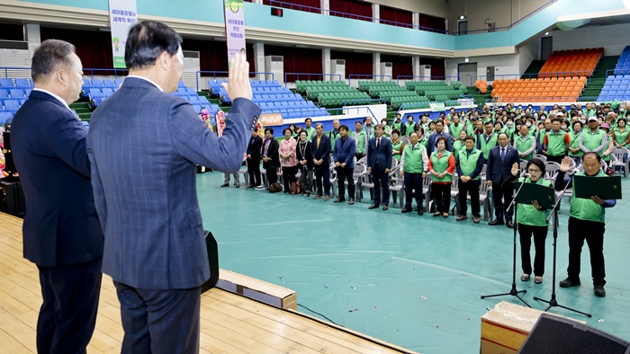 [½Ã»çÄÚ¸®¾ÆÀú³Î=Á¤Á¾¹Î ¼±ÀÓ±âÀÚ] »õ¸¶À»¿îµ¿ ÇÕõ±ºÁöȸ(ÁöȸÀå ¹ÚÁø½Ä)´Â 21ÀÏ ÇÕõüÀ°°ü¿¡¼ ÁöȸÀåÀ» ºñ·ÔÇÑ È¸¿ø 900¿© ¸íÀÌ Âü¼®ÇÑ °¡¿îµ¥ Á¦53Áֳ⠻õ¸¶À»ÀÇ ³¯ ±â³ä½Ä ¹× ÇѸ¶À½´ëȸ¸¦ °³ÃÖÇß´Ù.