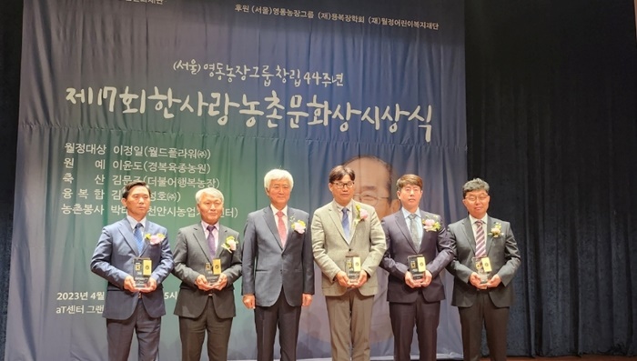 ÇÑ»ç¶û³óÃ̹®È»óÀº (¼¿ï)¿µµ¿³óÀå±×·ì(ȸÀå ±èÅÂÁ¤)ÀÇ Ã¢¸³ÀÚÀÎ ±è¿ëº¹ ¸í¿¹È¸ÀåÀÌ ¼³¸³ÇÑ (Àç)ÇÑ»ç¶û³óÃ̹®ÈÀç´ÜÀÌ ³ó¾÷·³óÃÌ ¹ßÀü¿¡ ±â¿©ÇÑ Âü Àϲ۵鿡°Ô ¼ö¿©ÇÏ´Â »óÀ¸·Î ¿ÃÇØ´Â ¿ø¿¹, Ãà»ê, À¶º¹ÇÕ, ³óÃ̺À»ç µî 4°³ ºÐ¾ß¿¡¼ 5Á¡À» ¼±Á¤ÇØ ½Ã»óÇß´Ù.