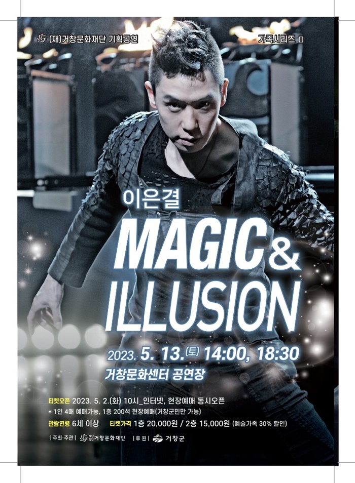 µÎ ¹øÂ° °ø¿¬Àº ±¹³» ÃÖ°íÀÇ ¸¶¼ú»ç ÀÌÀº°áÀÇ ‘MAGIC & ILLUSION’À̸ç, 5¿ù 13ÀÏ Åä¿äÀÏ ¿ÀÈÄ 2½Ã¿Í 6½Ã 30ºÐ, 2ȸ °ø¿¬À¸·Î ¸¶¼ú»ç ÀÌÀº°á ¸¸ÀÇ µ¶Æ¯ÇÑ ¿¬Ãâ ‘ÀÏ·ç¼Ç ÆÛÆ÷¸Õ½º’·Î °ü°´µéÀ» Çö½Ç°ú ȯ»óÀ» ³Ñ³ªµé°Ô ÇÏ´Â È·ÁÇÑ ¹«´ë¸¦ ¼±»çÇÒ ¿¹Á¤ÀÌ´Ù.