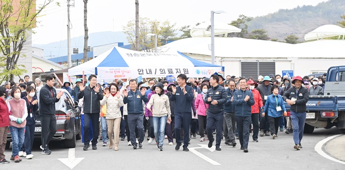 Çö¼¸é°Ç°À§¿øÈ¸ ÁÖÃÖ, û¼Û±ºº¸°ÇÀÇ·á¿ø¿¡¼ ÁÖ°üÇÑ À̹ø °È±âÇà»ç´Â Áö¿ª ÁÖ¹ÎÀÌ ÇÔ²² ¶æÀ» ¸ð¾Æ ÁøÇàµÇ¾ú´Ù. Âü°¡ÀÚµéÀº Çö¼¹®ÈüÀ°°ø¿ø¿¡¼ Ãâ¹ßÇØ ±¸»ê±³¸¦ °Ç³Ê Çö¼ Áß·°í±³ Á¤¹®À» Áö³ª ¹ÝȯÁ¡À» µ¹°í µÇµ¹¾Æ¿À´Â 2.8km ÄÚ½º¸¦ °ÉÀ¸¸ç ¸¸°³ÇÑ »ç°ú²É°ú ÇÔ²² µû¶æÇϰí ÈûÂù º½ÀÇ ±â¿îÀ» ¸¸³£ÇÏ´Â ½Ã°£À» º¸³Â´Ù.