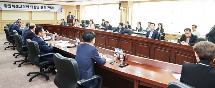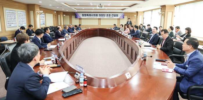 À̳¯ °£´ãȸ¿¡´Â ±èÀ̱٠ÀÇÀåÀ» ºñ·ÔÇÑ Ã¢¿øÆ¯·Ê½ÃÀÇȸ ÀÇÀå´Ü 7¸í°ú ±¸ÀÚõ ȸÀåÀ» ºñ·ÔÇÑ »ó°øÈ¸ÀÇ¼Ò È¸Àå´Ü 8¸íÀÌ Âü¼®ÇÑ °¡¿îµ¥, ±â¾÷ÀεéÀÇ °ÇÀÇ»çÇ× ¹× ¿î¿µ¿¡ °üÇÑ °íÃæ µî¿¡ ´ëÇÑ Ã»Ãë¿Í ³íÀǰ¡ ÀÌ·ïÁ³´Ù.