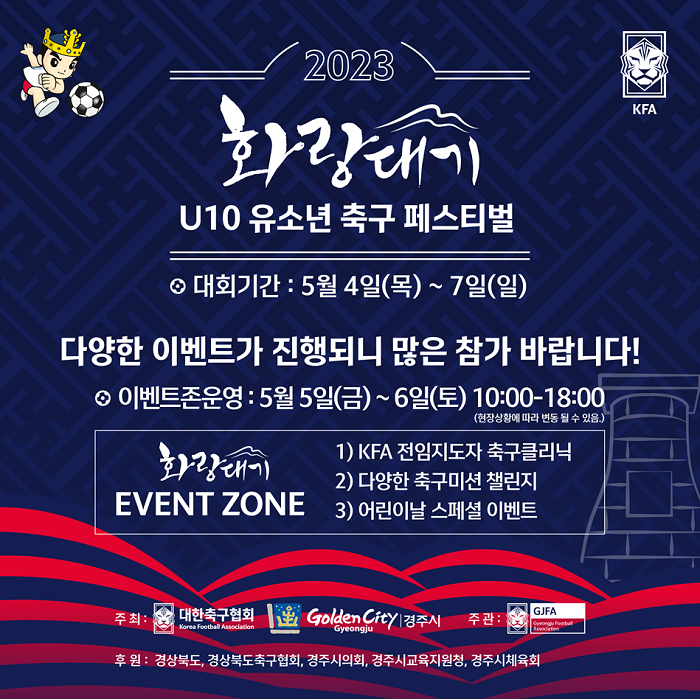 [½Ã»çÄÚ¸®¾ÆÀú³Î=°æºÏÃëÀ纻ºÎ] Ã౸ ²Þ³ª¹« µî¿ë¹®ÀÎ ‘2023 ȶû´ë±â U-10 Ã౸ Æä½ºÆ¼¹ú’ÀÌ 4ÀÏ °³¸·ÇØ 7ÀϱîÁö 4Àϰ£ ¾ËõüÀ°°ø¿ø¿¡¼ ÆîÃÄÁö°í ÀÖ´Ù.