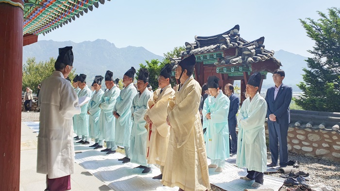 [½Ã»çÄÚ¸®¾ÆÀú³Î=Á¤Á¾¹Î ¼±ÀÓ±âÀÚ] °ÅⱺÀº 9ÀÏ °¡Á¶¸é Àå±â¸®¿¡ À§Ä¡ÇÑ Ã¢´ö»ç¿¡¼ ÀÌÁ¾ÇÏ ºÎ±º¼ö, ±èÀϼö µµÀÇ¿ø°ú Áö¿ª À¯¸², ÈÄ¼Õ µî 50¿© ¸íÀÌ Âü¼®ÇÑ °¡¿îµ¥ ¸é¿ì °ûÁ¾¼®(άñ£à¸, 1846~1919³â) ¼±»ý Ã߸ðÁ¦¸¦ °ÅÇàÇß´Ù.
