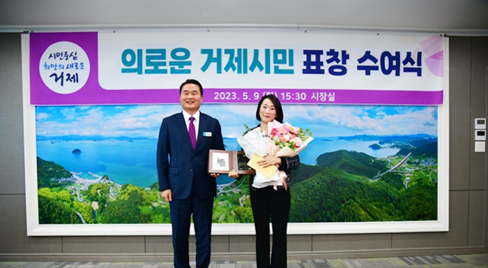 [½Ã»çÄÚ¸®¾ÆÀú³Î=Á¤Á¾¹Î ¼±ÀÓ±âÀÚ] °ÅÁ¦½Ã(½ÃÀå ¹ÚÁ¾¿ì)´Â 9ÀÏ ½Ãû ½ÃÀå½Ç¿¡¼ ‘ÀÇ·Î¿î ½Ã¹Î’À¸·Î ¼±Á¤µÈ À̸íÀº ¾¾(43¼¼)¿¡°Ô ǥâÆÐ¸¦ ¼ö¿©ÇÏ°í °¨»çÀÇ ¸¶À½À» ÀüÇß´Ù.