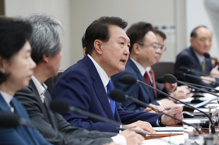| À±¼®¿ ´ëÅë·ÉÀÌ 11ÀÏ ¼¿ï ¿ë»ê ´ëÅë·É½Ç û»ç¿¡¼ ¿¸° Äڷγª19 Áß¾ÓÀç³¾ÈÀü´ëÃ¥º»ºÎ ȸÀÇ¿¡¼ ¸ðµÎ¹ß¾ðÀ» Çϰí ÀÖ´Ù. /´ëÅë·É½ÇÅë½Å»çÁø±âÀÚ´Ü |