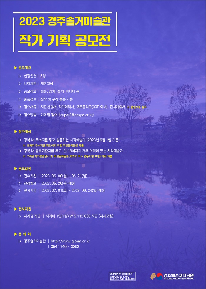 °æÁְּŹ̼ú°üÀº ½Ã°¢¿¹¼úÀÛ°¡ÀÇ ¿ª·®Á¦°í¿Í ½ÇÇèÀû ÀÛǰ¼¼°è¸¦ ÆîÄ¥ ¼ö ÀÖ´Â ±âȸ¸¦ Á¦°øÇÏ°í °æºÏ¹Ì¼úÀÇ ¹ßÀü¿¡ ±â¿©ÇÏ´Â °ø¸³¹Ì¼ú°üÀ¸·Î¼ÀÇ °øÀÍ ½ÇÇöÀ» À§ÇØ ‘2023 °æÁְּŹ̼ú°ü ÀÛ°¡ ±âȹ °ø¸ð’ÀüÀ» ¸¶·ÃÇß´Ù.
