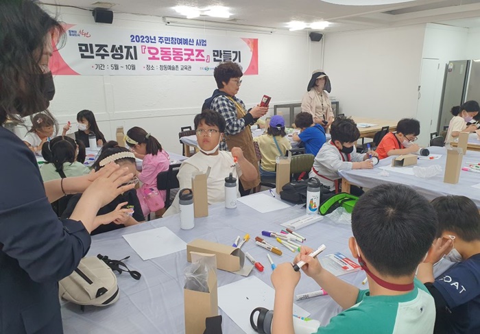 '¹ÎÁÖ¼ºÁö ¿Àµ¿µ¿±ÂÁî' ¸¸µé±â üÇè ÇÁ·Î±×·¥ ¼Ò¿ä ½Ã°£Àº ÃÑ 2½Ã°£À̸ç, ⵿¿¹¼úÃÌ ¾ÆÆ®¼¾ÅÍ ¾Æ°í¶ó ±¤Àå¿¡¼ Áý°á ÈÄ ¡ã⵿¿¹¼úÃÌ Å½¹æ ¡ã3・15Àǰбâ³ä°ü ¿ª»ç üÇè ¡ã¹ÎÁÖ¼ºÁö ¿Àµ¿µ¿±ÂÁî ¸¸µé±â üÇè Ȱµ¿À¸·Î ÁøÇàµÇ¸ç, ⵿¿¹¼úÃÌ ÀÔÁÖ¿¹¼úÀεéÀÌ ±ÂÁî ¸¸µé±â °»ç·Î Âü¿©ÇÑ´Ù.