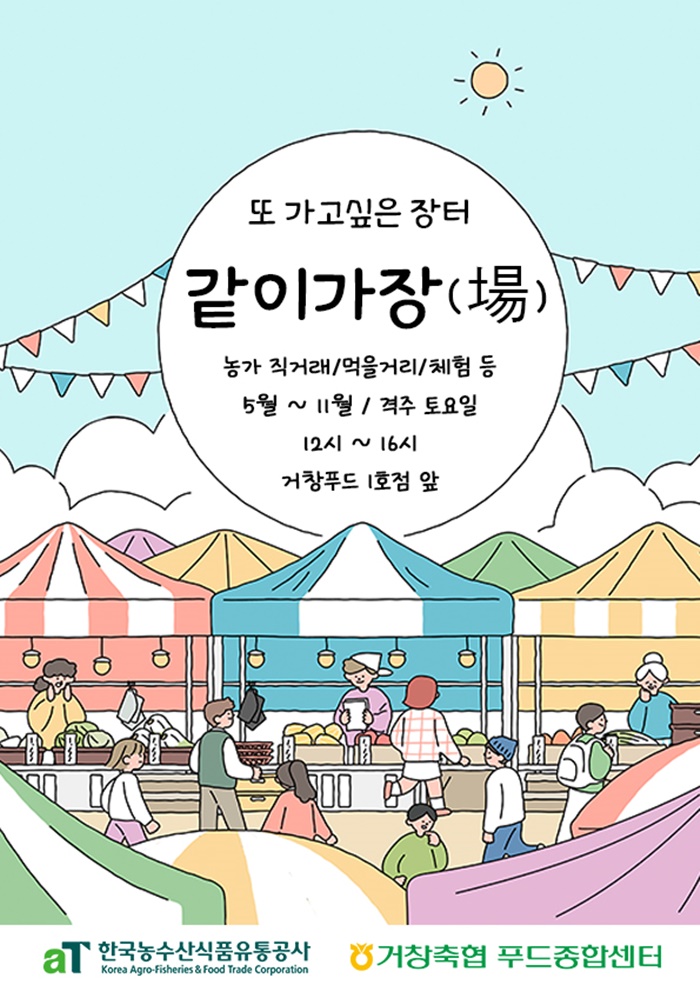 °ÅⱺÀÌ ÁÖ°üÇÏ°í °ÅâÃà»ê¾÷Çùµ¿Á¶ÇÕÀ» ¿î¿µÁÖü·Î ÇÏ´Â ÁÖ¸» Á÷°Å·¡ÀåÅÍ´Â 13ÀÏ Ã¹ °³ÀåÀ» ½ÃÀÛÀ¸·Î 11¿ù ¸»±îÁö °ÝÁÖ·Î ÃÑ 15ȸ ¿î¿µÇÒ ¿¹Á¤À̸ç, Çѱ¹³ó¼ö»ê½ÄǰÀ¯Åë°ø»ç(aT) °ø¸ð»ç¾÷À¸·Î È®º¸ÇÑ »ç¾÷ºñ(±¹ºñ 2,200¸¸ ¿ø)¸¦ Ȱ¿ëÇØ ÁøÇàµÈ´Ù.